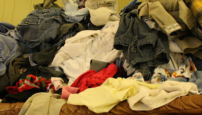 This was 15 loads of clean laundry, waiting to be folded and put away.  I've never been this far behind on laundry before.  A true sign of motherhood to 3, I guess.